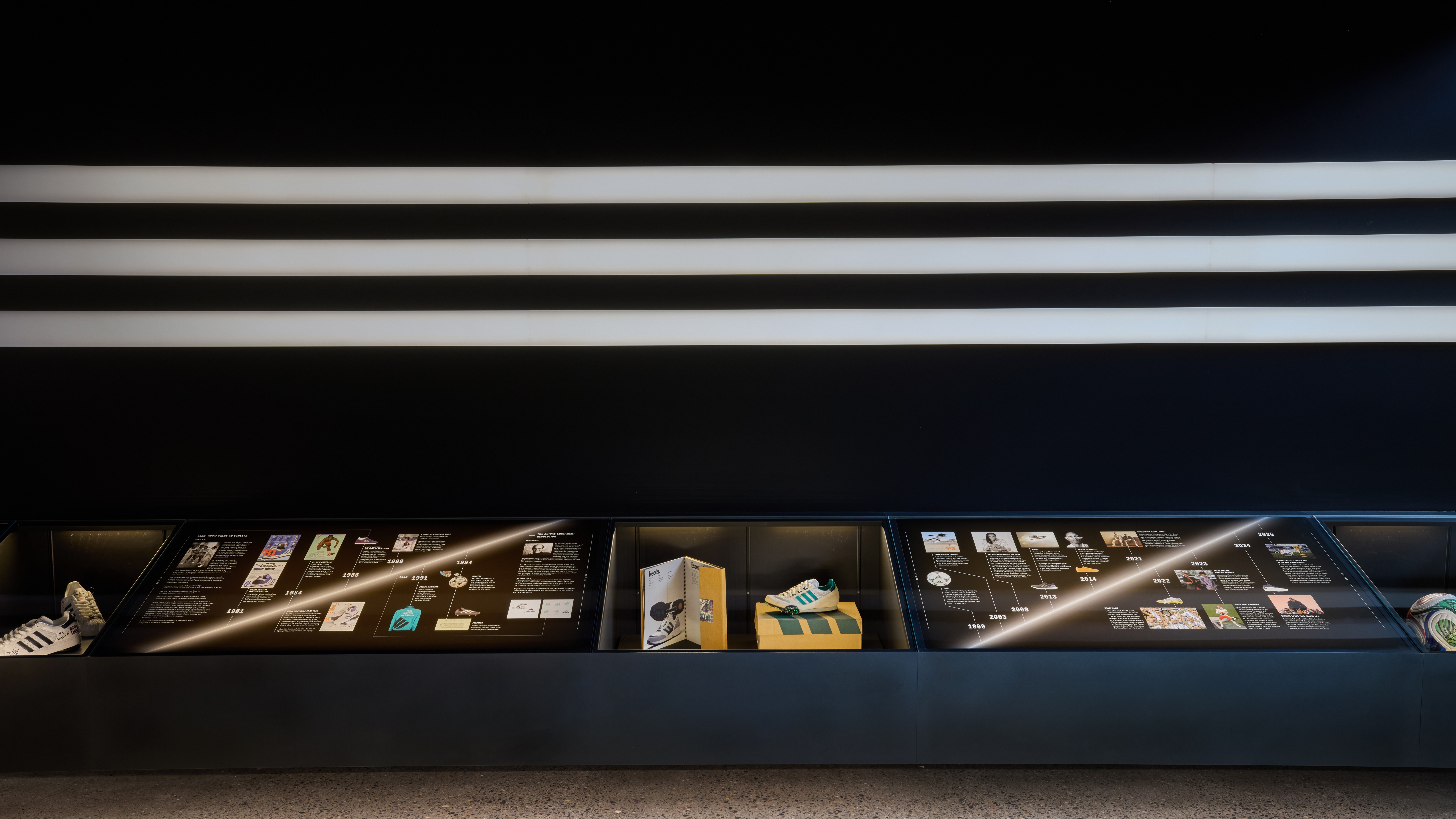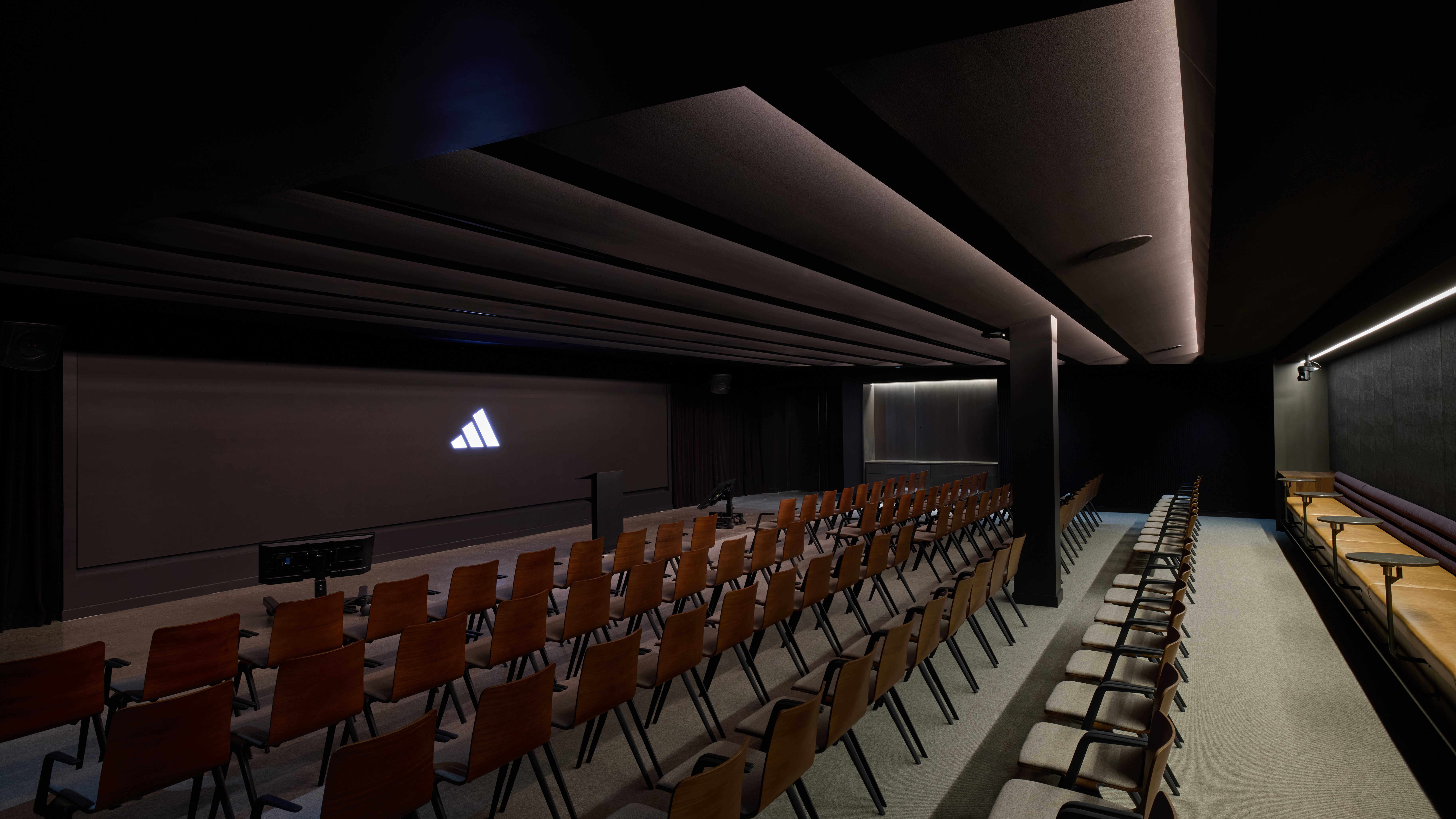 The team didn’t change anything they didn’t need to, leaving many spaces intact and touching up where needed or painting to match the new color palette. This permitted them to focus the budget on high impact elements such as the auditorium’s audio-visual technology and the adidas history display which greets guests at the entrance.